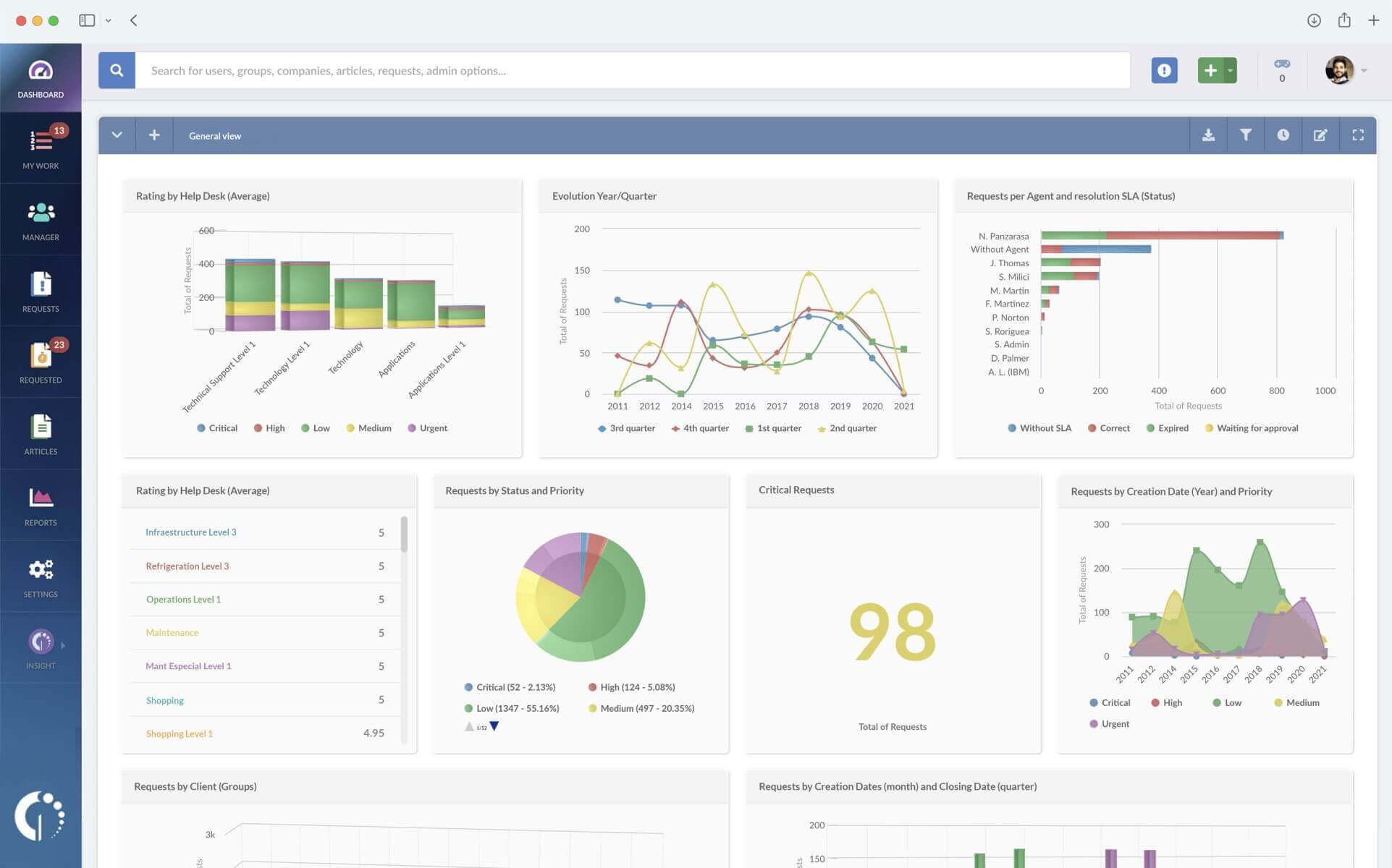 Personaliza tus tableros de control y obtén total transparencia del estado de tu mesa de ayuda para poder tomar acción en el momento justo.