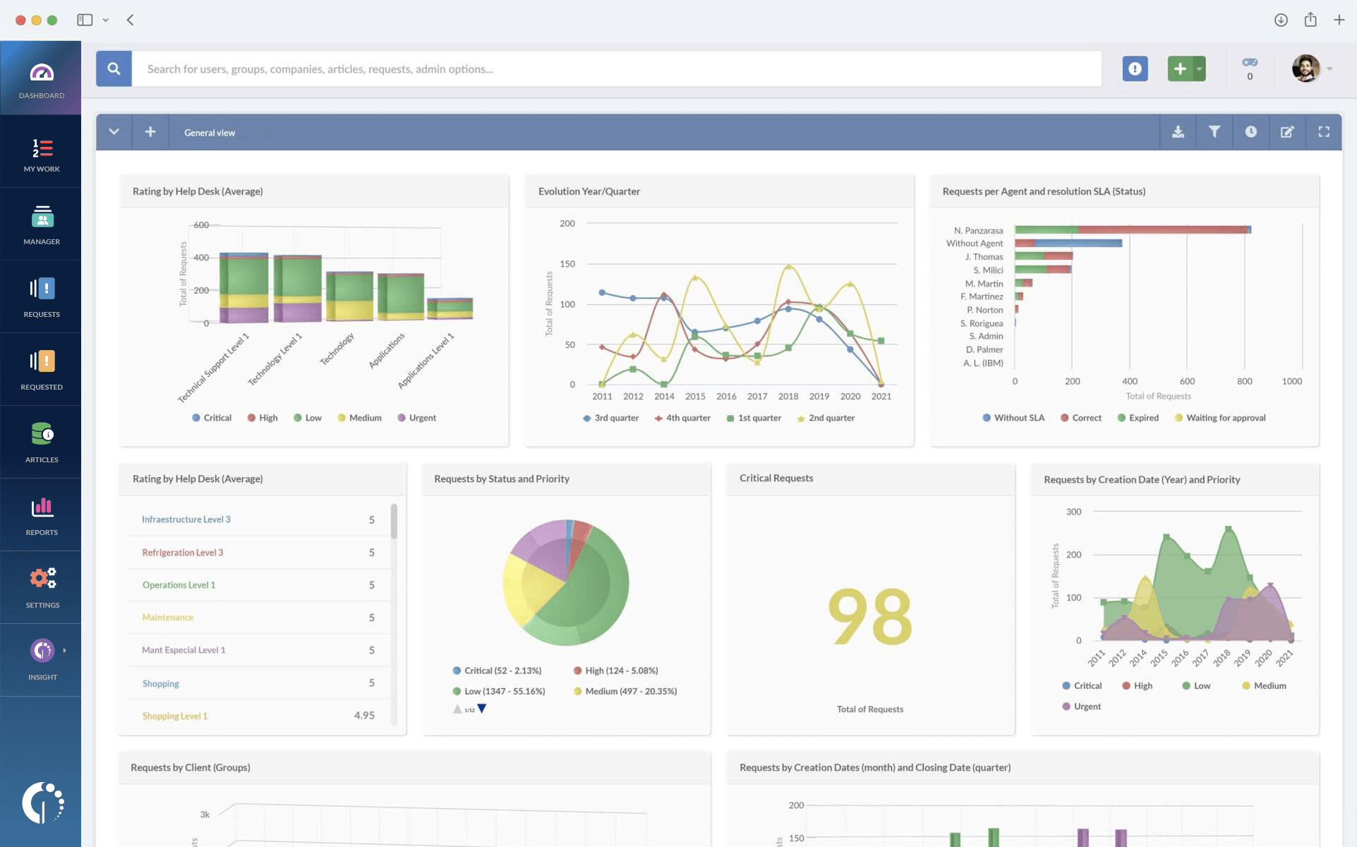 Genera informes detallados y personalizados para tu mesa de ayuda, proporcionando insights sobre tickets abiertos, tiempos de resolución, satisfacción del cliente y más. Optimiza la toma de decisiones y mejora la eficiencia del equipo con datos precisos y actualizados.