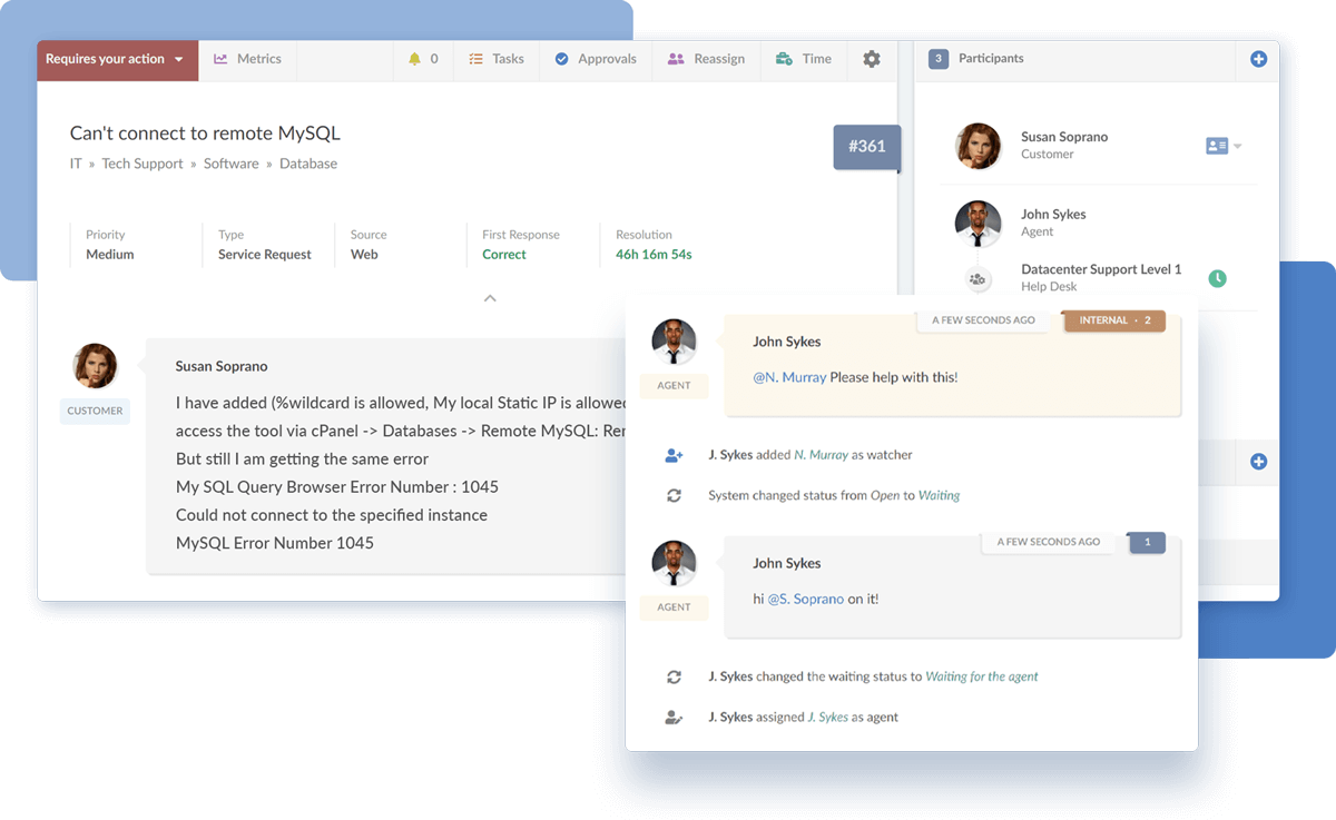 Más que un simple ticket, cada solicitud se convierte en una poderosa herramienta de interacción y trabajo en equipo. Con la capacidad de etiquetar a otros agentes y proporcionarles todo el contexto e información necesarios, los equipos pueden colaborar de manera sencilla para resolver las solicitudes y brindar una asistencia de calidad superior. Esta dinámica fomenta un ambiente de trabajo colaborativo y eficiente, donde cada miembro del equipo puede contribuir de manera efectiva a la resolución de problemas.